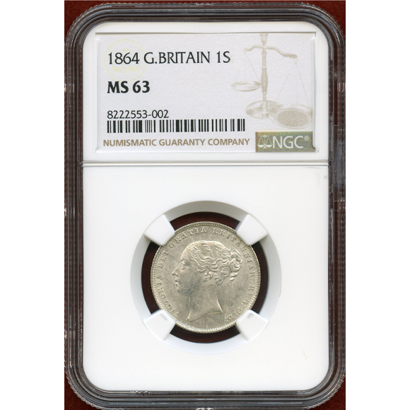イギリス 1864年 シリング 銀貨 ヴィクトリア女王 NGC MS63