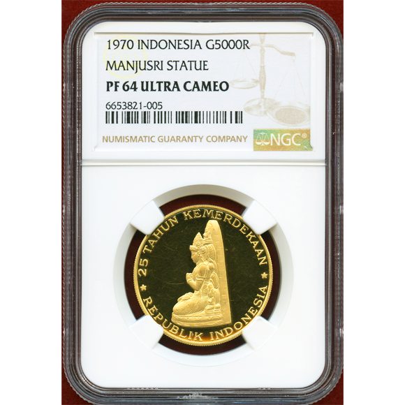 インドネシア 1970年 5000ルピア金貨 文殊菩薩像 PF64UC