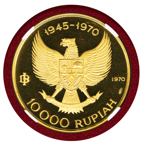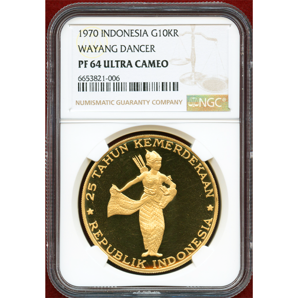 インドネシア 1970年 10000ルピア金貨 ワヤンダンサー NGC PF64UC