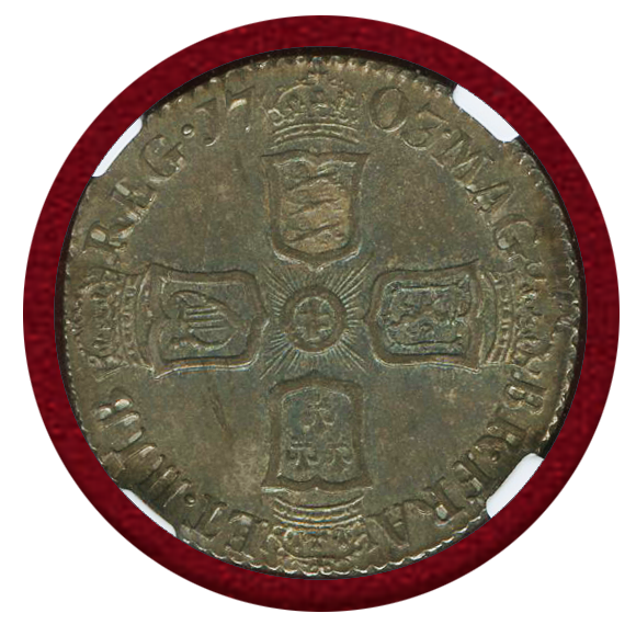 【SOLD】イギリス 1703年 6ペンス 銀貨 アン女王 VIGO NGC MS63