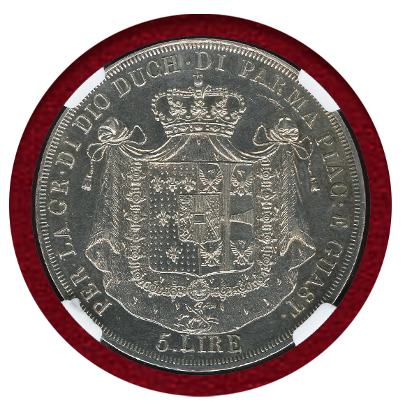 ナポレオン・ボナパルトの妃であり、パルマ公国の王女であった、マリア・ルイーザの5リレ銀貨です。状態の良いものが少ない銀貨です。