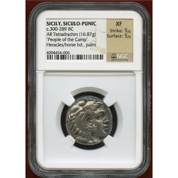 古代ギリシャ カルタゴ領シチリア 300-289BC 4ドラクマ銀貨 ヘラクレス XF