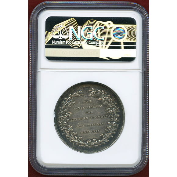 このメダルは、ヴィクトリアの18歳の誕生日を記念して造られたメダルですが、この時まだ女王になっていなかったため、ウィリアム4世の治世下で作られた非常に珍しいメダルです。
