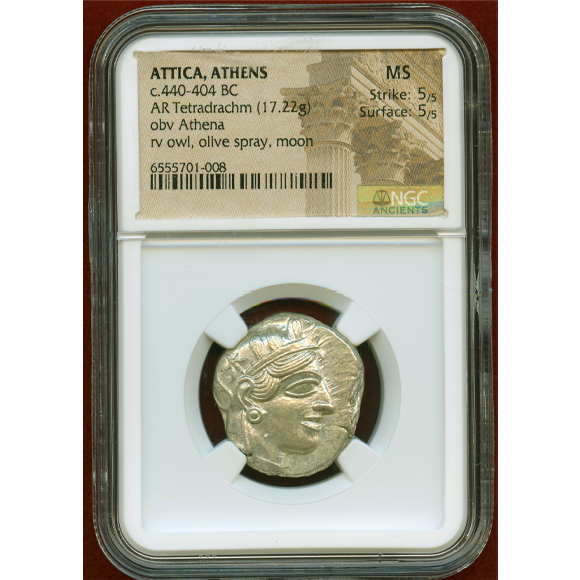 古代ギリシャ アッティカ アテネ 440-404BC 4ドラクマ 銀貨 フクロウ NGC MS