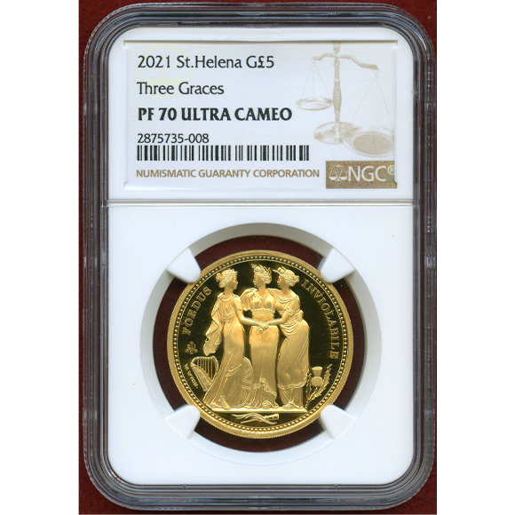 セントヘレナ 2021年 5ポンド 金貨 スリーグレイセス NGC PF70UC