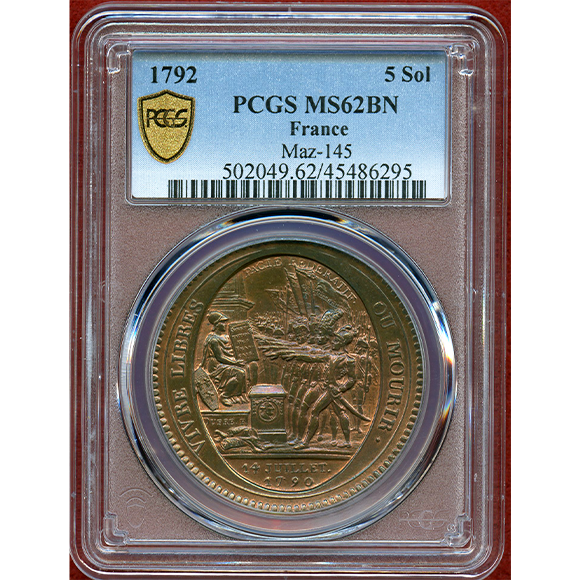 このコインはフランスの代表的貨幣デザイナーのオーギュスタン・デュプレがデザインし、イギリスのバーミンガムにあるソーホー造幣局で打たれており、フランス政府発行のコインよりも品質が高く、デザインも素晴らしかったことで当時、大変人気を博しました。