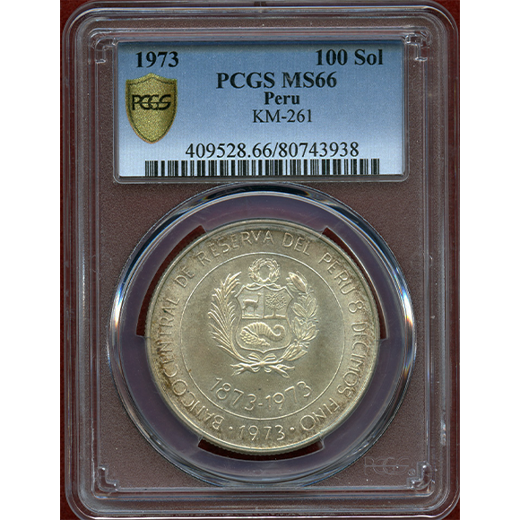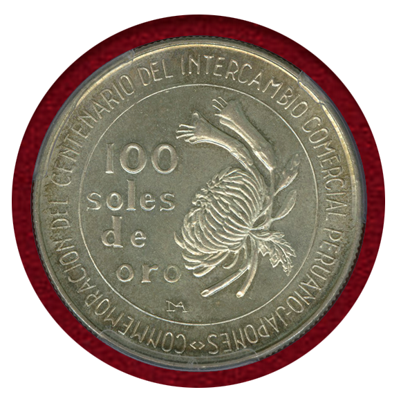 ペルー 1973年 100ソル銀貨 日ペルー交流100周年記念 PCGS MS66