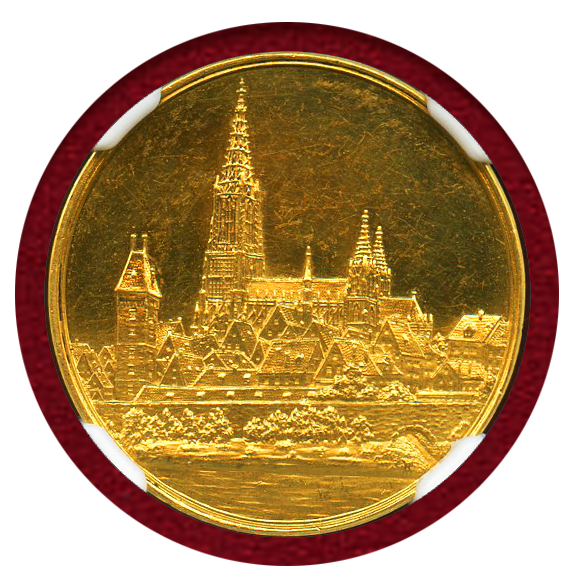 2ダカット相当の金メダル。製造年の記載がなく不明ですが1890年頃~1897年頃にウルム大聖堂の完成を記念して発行されたメダルとされています。