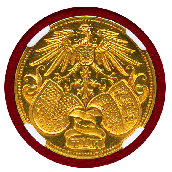 また、Numismatic News Bulletin(2003年4月号)の記事「Ulmに関する考察」によると、金で鋳造されたのはわずか3枚のみとのことです。