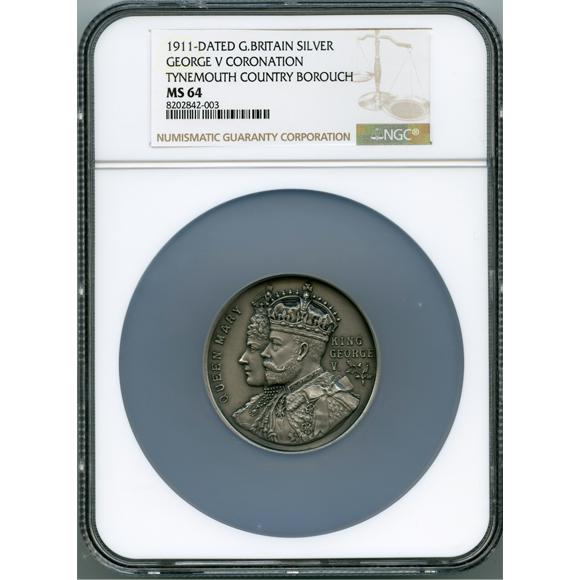 イギリス タインマス 1911年 銀メダル ジョージ5世戴冠記念 NGC MS64