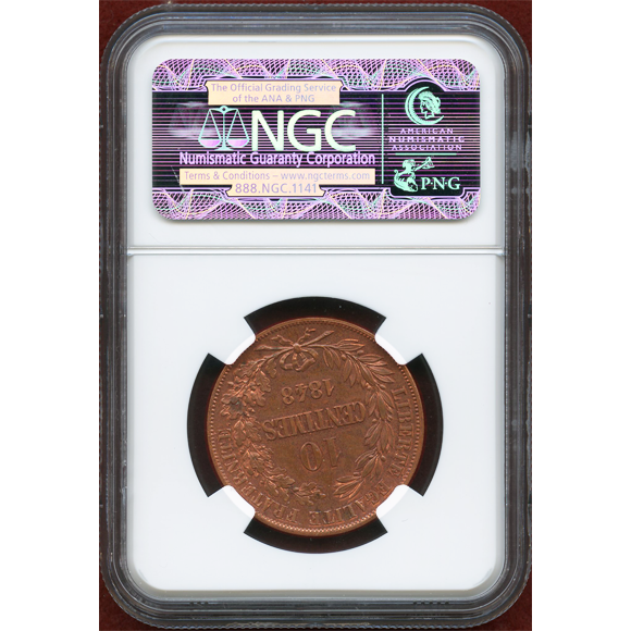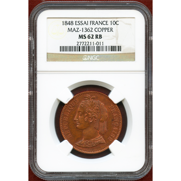 【SOLD】フランス 1848年 ESSAI 10セント パターン銅貨 NGC MS62RB