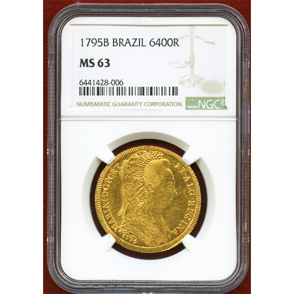 人気のマリア1世肖像の6400レイス金貨です。