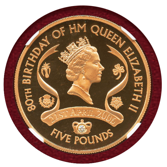 オルダニー 2006年 5ポンド 金貨 エリザベス女王80歳記念 NGC PF69UC
