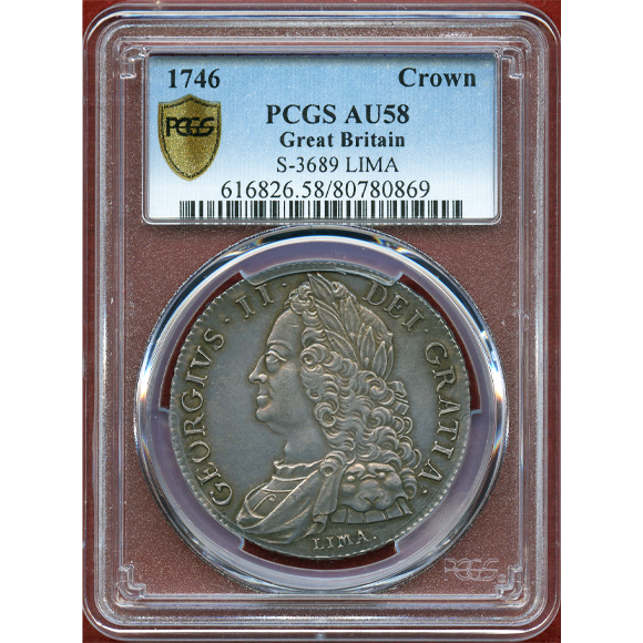 このLIMAの刻印のあるコインは、太平洋で活動していた英国、アンソン提督の艦隊がペルーのリマからスペインへ輸送中だった大量のスペイン銀貨を外国船から奪取し、その銀貨を溶解して鋳造されたものです。
