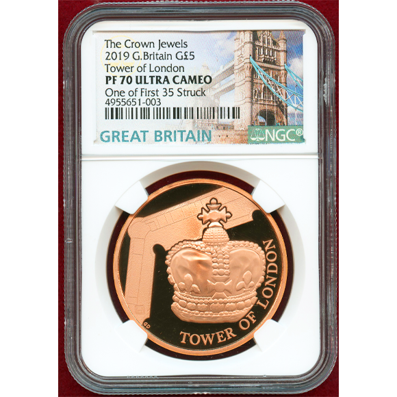 【SOLD】イギリス 2019年 5ポンド 金貨 ロンドン塔 クラウンジュエル PF70UC