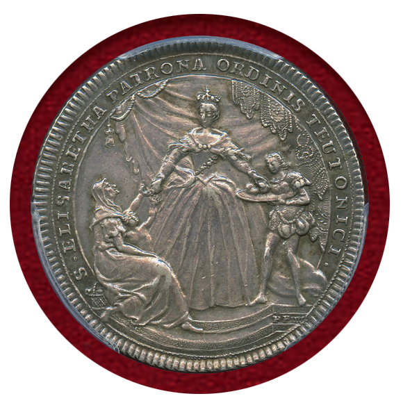 表面は飢餓に苦しむ市民にパンを配る聖エリザベスが描かれています。