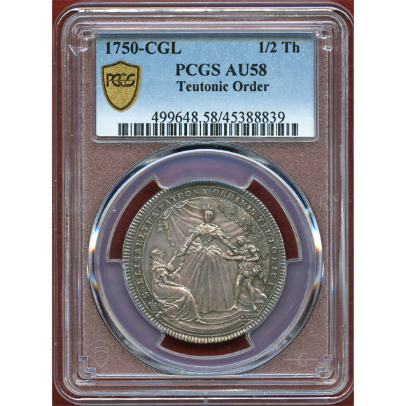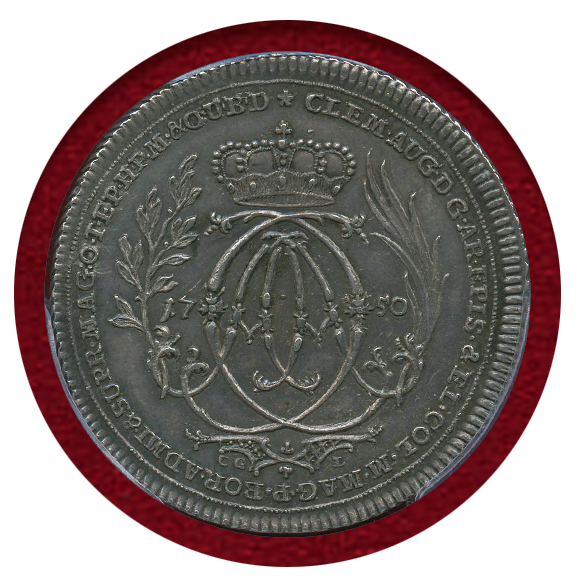 ドイツ騎士団総長、バイエルン伯クレメンス・アウグスト統治時代に発行されたハーフターラー銀貨。市場で見かけることも殆どないレアタイプ。