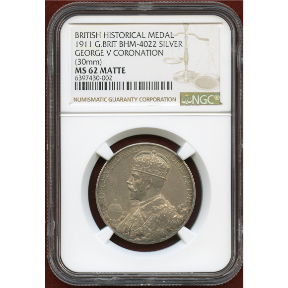 イギリス 1911年 銀メダル ジョージ5世戴冠記念 NGC MS62Matte