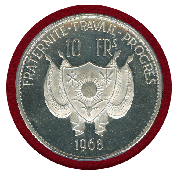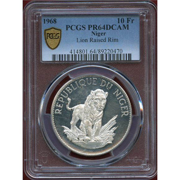 ニジェール 1968年 10フラン 銀貨 ライオン PCGS PR64DCAM