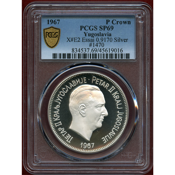 ユーゴスラビア 1967年 クラウン銀貨 試作貨 ピョートル2世 PCGS SP69