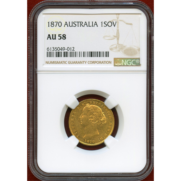 オーストラリア 1870SY ソブリン金貨 ヴィクトリア女王 バンクシア NGC AU58