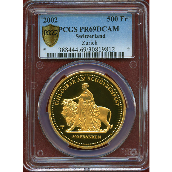 スイス 現代射撃祭 2002年 500フラン 金貨 ウナとライオン PR69DCAM