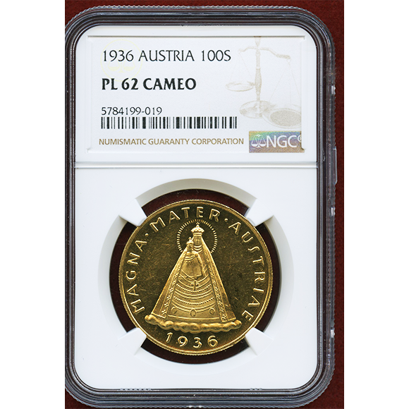 オーストリア 1936年 100シリング 金貨 マドンナ NGC PL62 CAMEO