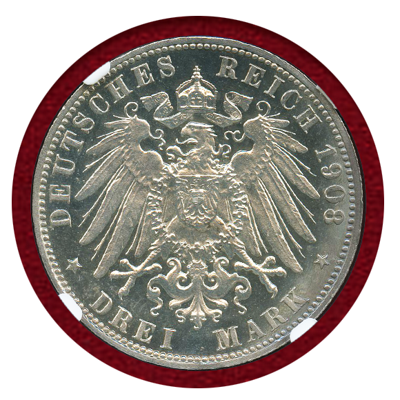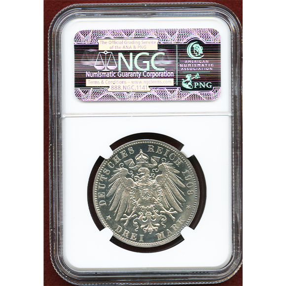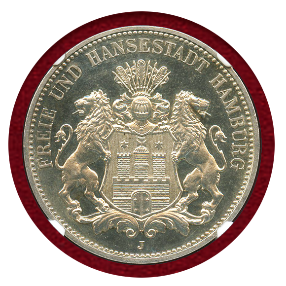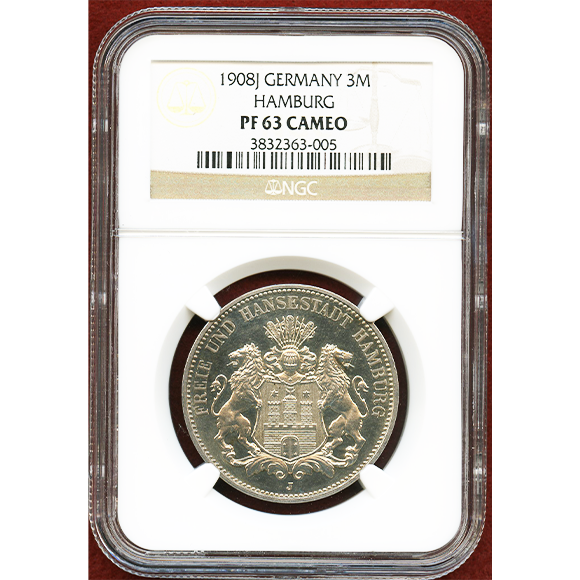 ドイツ ハンブルク 1908J 3マルク 銀貨 都市紋章 NGC PF63CAMEO