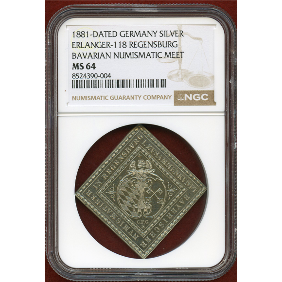ドイツ レーゲンスブルク 1881年 バイエルン貨幣協会 銀メダル NGC MS64