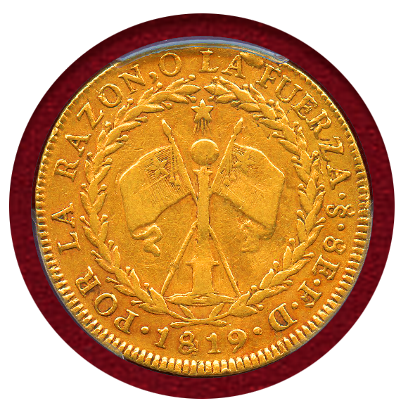 テキストは「EL ESTADO DE CHILE CONSTIT・INDEPENDIENTE」チリ国は独立国であるという意。