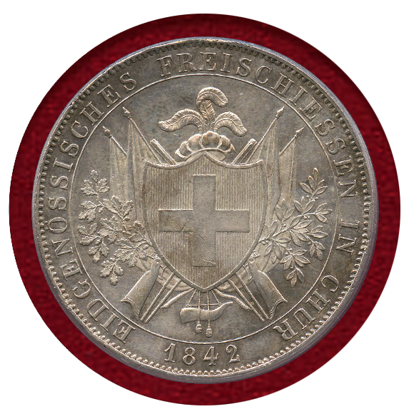グラウビュンデンのクールで開催された射撃祭を記念して発行された銀貨です。