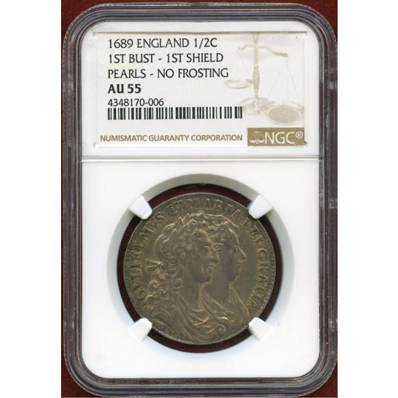 ウィリアム&メアリーのハーフクラウン銀貨です。