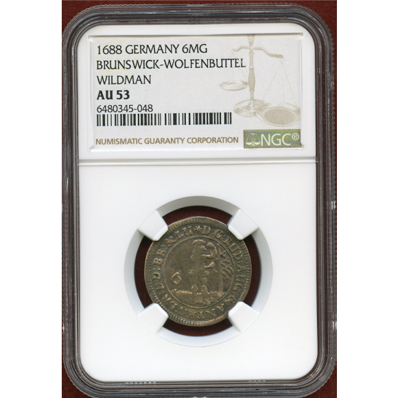 ドイツ ブラウンシュヴァイク・ヴォルフェンビュッテル 1688年 6MG 銀貨 NGC AU53