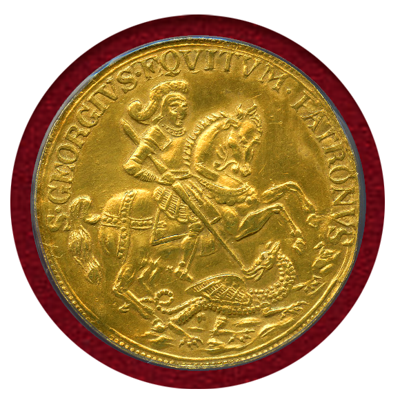 この構図がこのメダルの大きな特徴で17世紀初頭から作られ始め、ダカット金貨(1/2から100ダカットメダルもある)や銀でターラー,半ターラーの重量で作られたものがあります。大変人気なメダルで20世紀になってもクレムニッツ以外でも作られ、図柄も少しずつ変化していきます。戦いに赴く際にお守りとして戦地へ持参し、王や貴族、士官などは金や銀、兵士たちは銅メダルであったと推測されます。