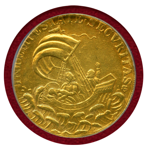 裏面の有名な場面(キリストと2人の使徒)にラテン語でIN TEMPESTATE SECU(V)RITASと書かれてます。