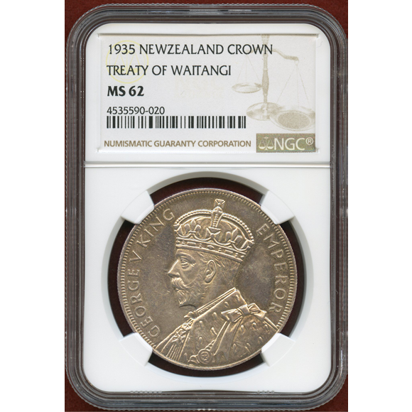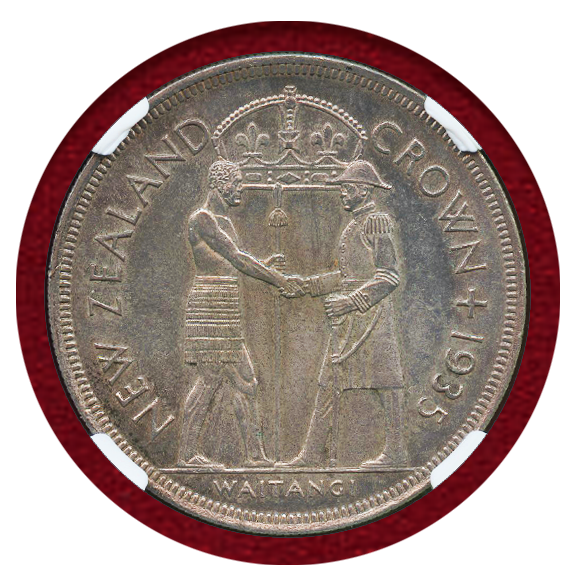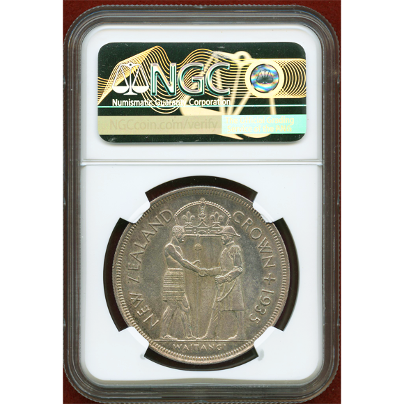 通称「ワイタンギクラウン」。オセアニア地域の大型銀貨を代表する名品として知られています。
