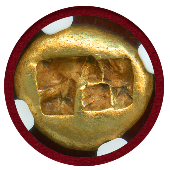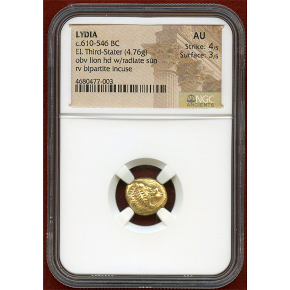 リディア王国 紀元前610-546年 1/3ステーター エレクトラム貨 ライオン NGC AU