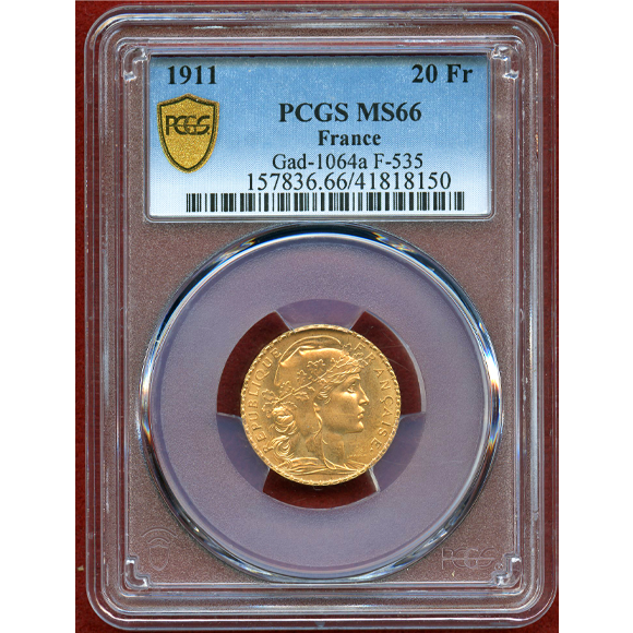 【SOLD】フランス 1911年 20フラン 金貨 マリアンヌ PCGS MS66