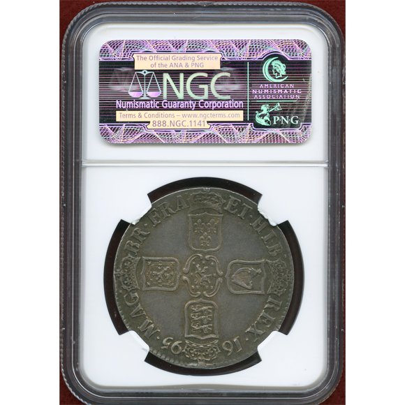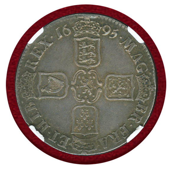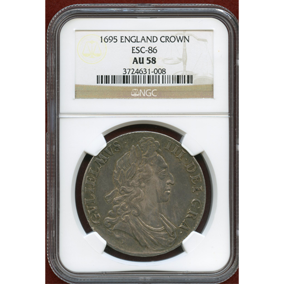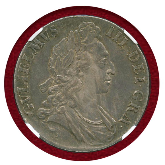 ウィリアム3世のファーストバストタイプのクラウン銀貨です。