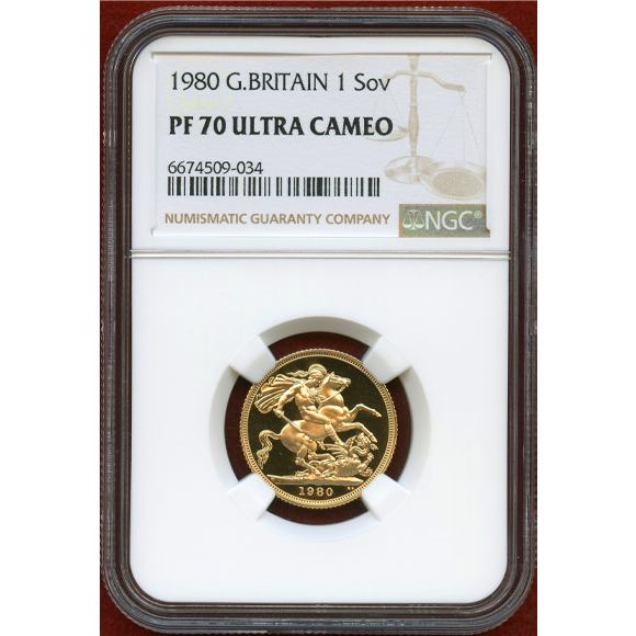 イギリス 1980年 ソブリン 金貨 エリザベス2世 PF70UC