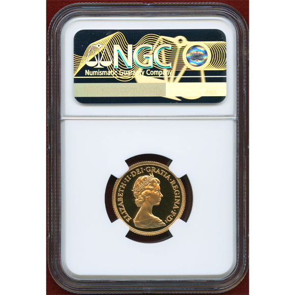エリザベス女王のコインの中でも人気の2ndポートレート(ヤング)のソブリン金貨です。PF70UCのパーフェクト鑑定品。