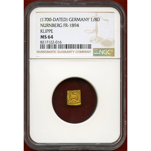 ドイツ 1700N 1/8 ラムダカット 金貨 神の子羊 クリッペ NGC MS64