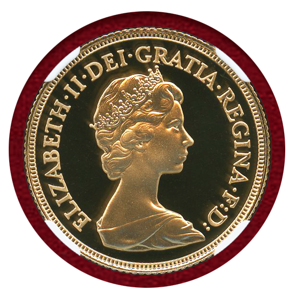 エリザベス女王のコインの中でも人気の2ndポートレート(ヤング)のソブリン金貨です。PF70UCのパーフェクト鑑定品。