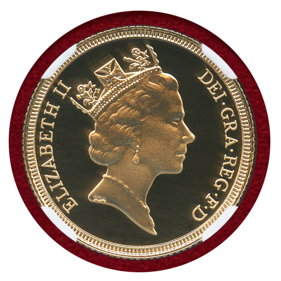 エリザベス女王のコインの中でも人気の3ndポートレート(ミドル)のソブリン金貨です。PF70UCのパーフェクト鑑定品。