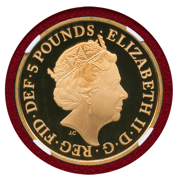 英国赤十字社の150周年を記念して発行された5ポンド金貨です。
