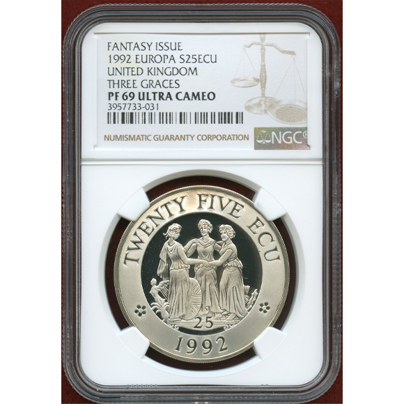 ヨーロッパ 1992年 25エキュ 銀貨 UK ファンタジー スリーグレイセス PF69UC