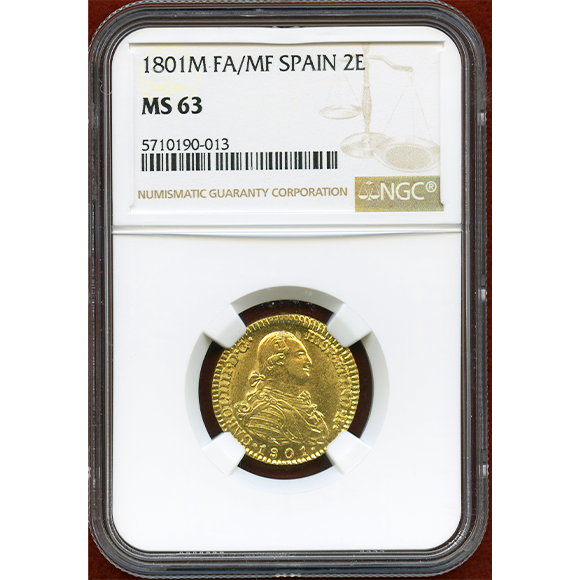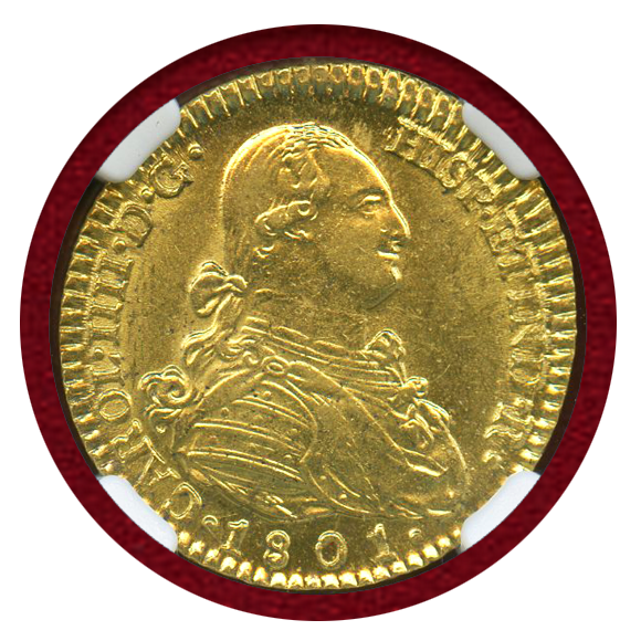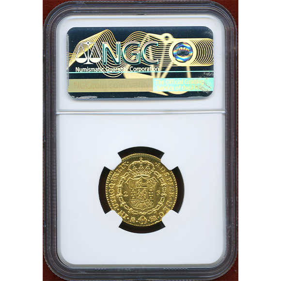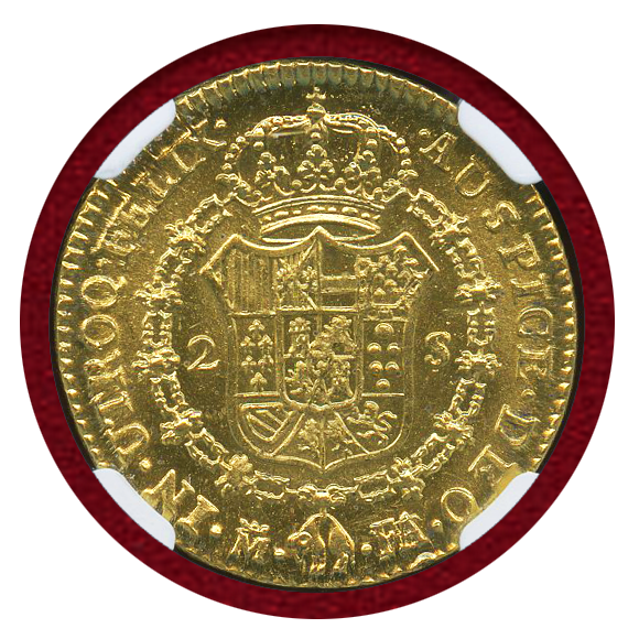 非常に状態の良い、カルロス4世の2エスクード金貨です。