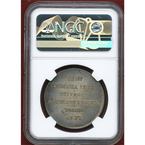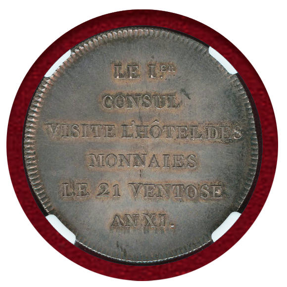 ナポレオン・ボナパルトが第一執政当時1803年3月12日にパリ造幣局を訪問した記念に製造された試作銀貨です。