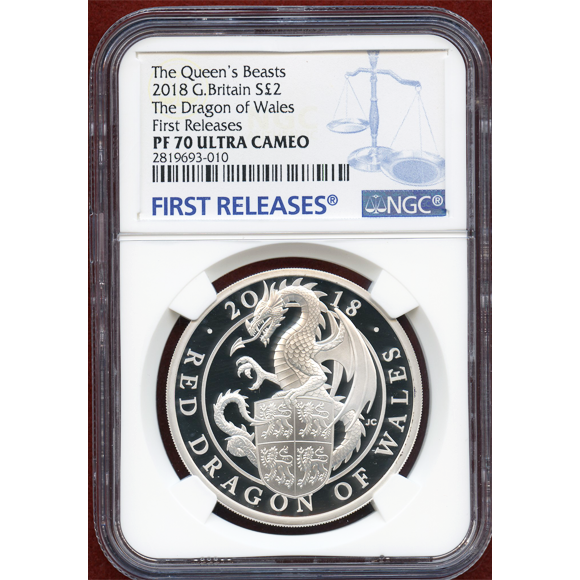 【SOLD】イギリス 2018年 2ポンド 銀貨 クイーンズビースト ドラゴン NGC PF70UC