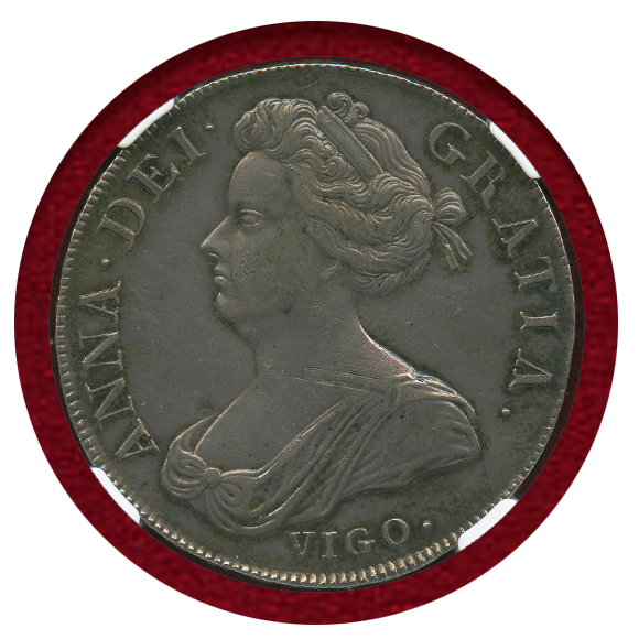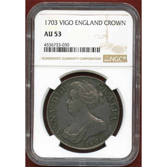 【SOLD】イギリス 1703年 クラウン 銀貨 アン女王 VIGO NGC AU53
